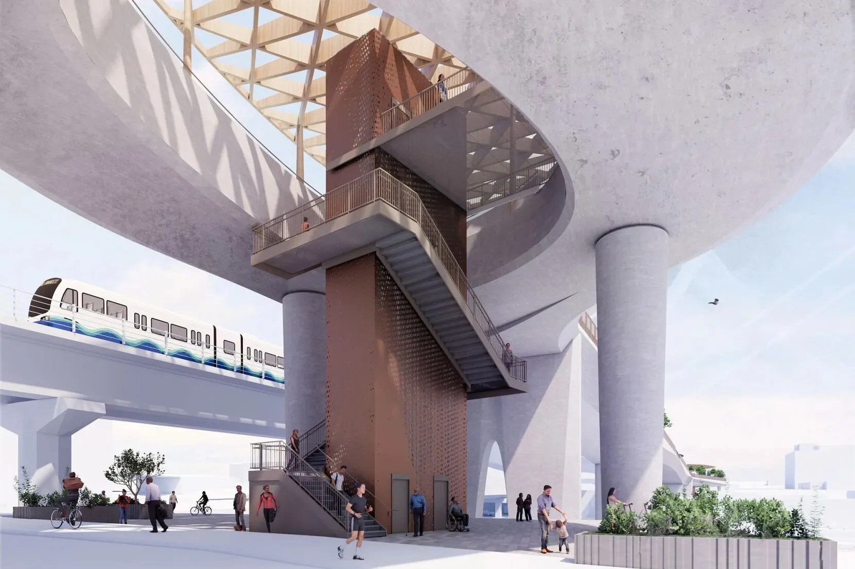 But the minds behind the Grand Connection don’t see it as just a way to get from point A to point B. The city is treating it as a layered civic space, where transportation, public art, green infrastructure, and community all converge. Designed with pedestrians and cyclists in mind, the corridor will offer flexible gathering areas, active landscapes, and public installations that reflect the physical and cultural texture of the neighborhoods it moves through.